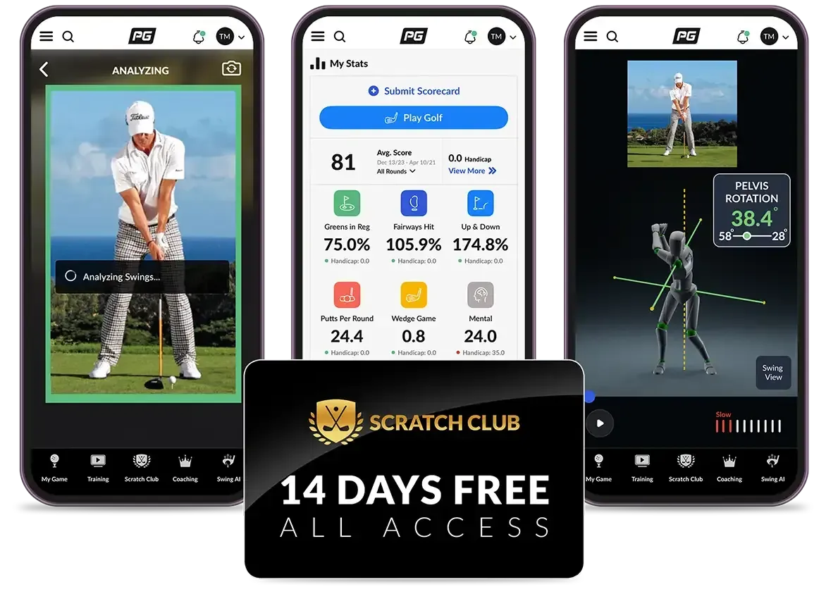 Inside Scratch Club, you’ll find world-class coaching from golf legends like Nick Faldo, Hank Haney, Martin Chuck, David Leadbetter, and more.