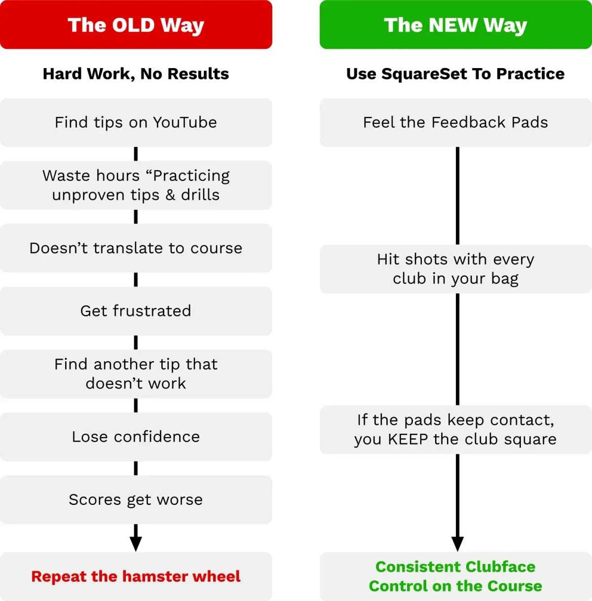 ✅ Feel the feedback the SquareSet is giving you at every point in your swing…