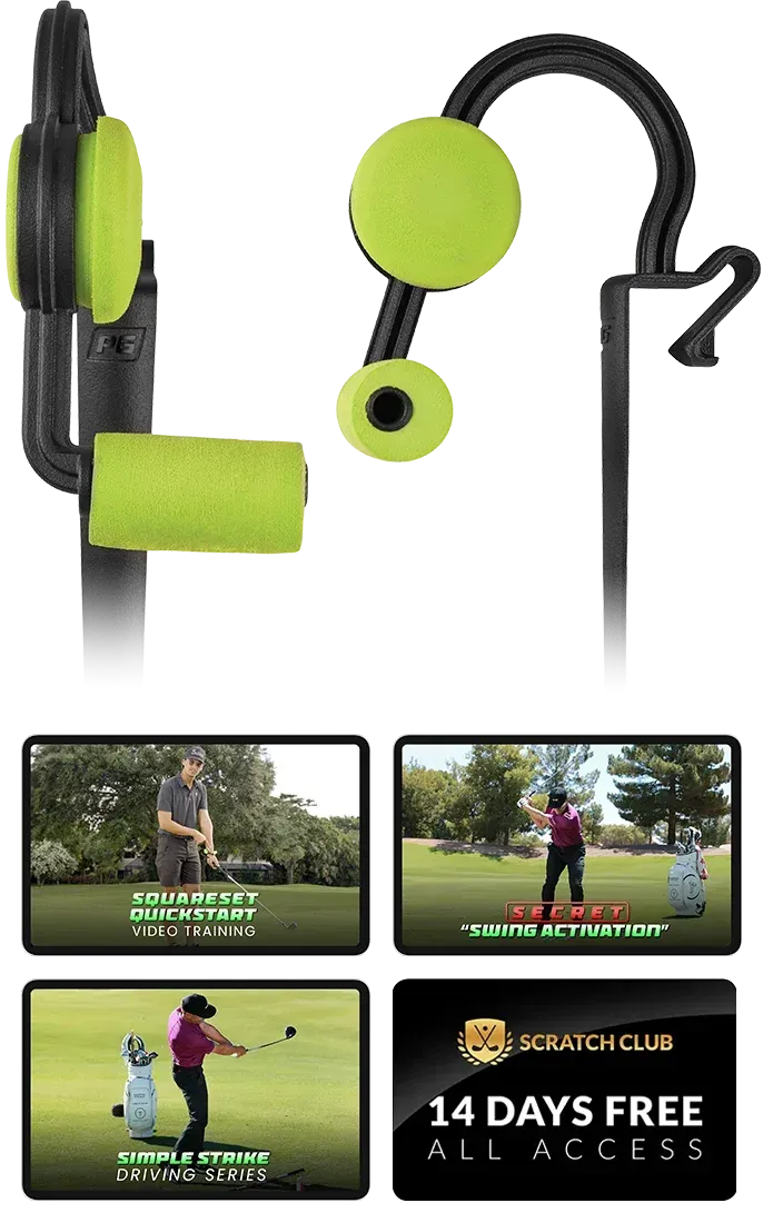 This step-by-step video series gets you even faster results with your SquareSet’s Pro Impact Technology. It starts by walking you through a quickstart tutorial to get you familiar with the revolutionary features. And then shows you how to START square and STAY square through the whole swing… which gives you powerful shaft lean and consistent ball striking, with more distance and clubface control, with just a few practice swings.